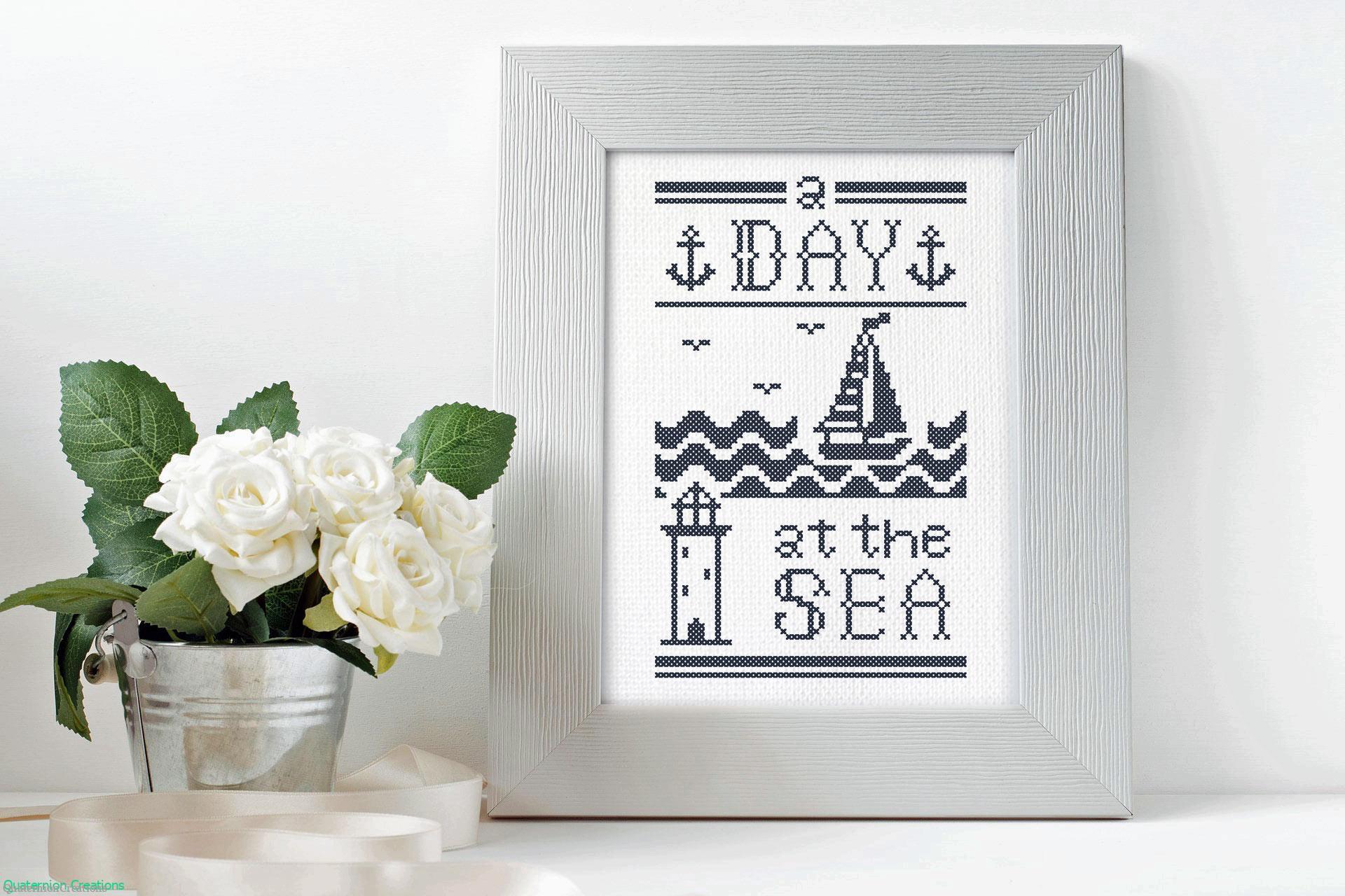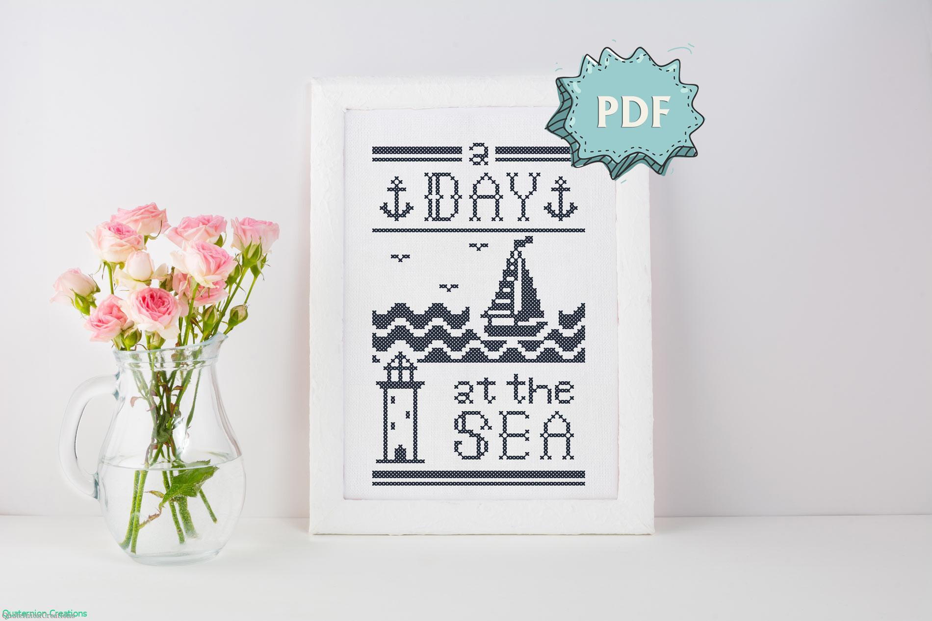 A souvenir to remember sweet summer days at the sea! Use navy colored thread (as shown) to give your work a maritime flavour, or try variegated thread.