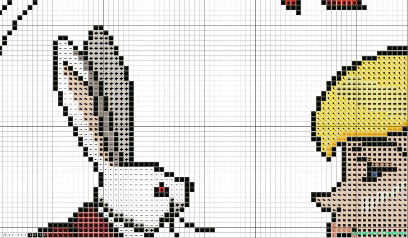 Pattern size: 136 X 132 stitches (full stitches only), 14 colors. Comes both split into pages and all on one page for digital use.