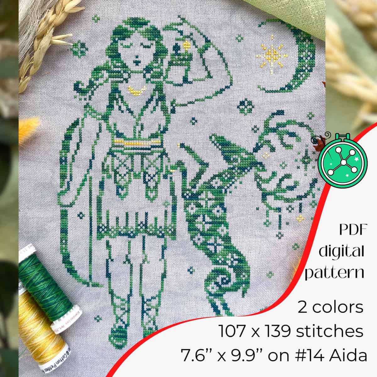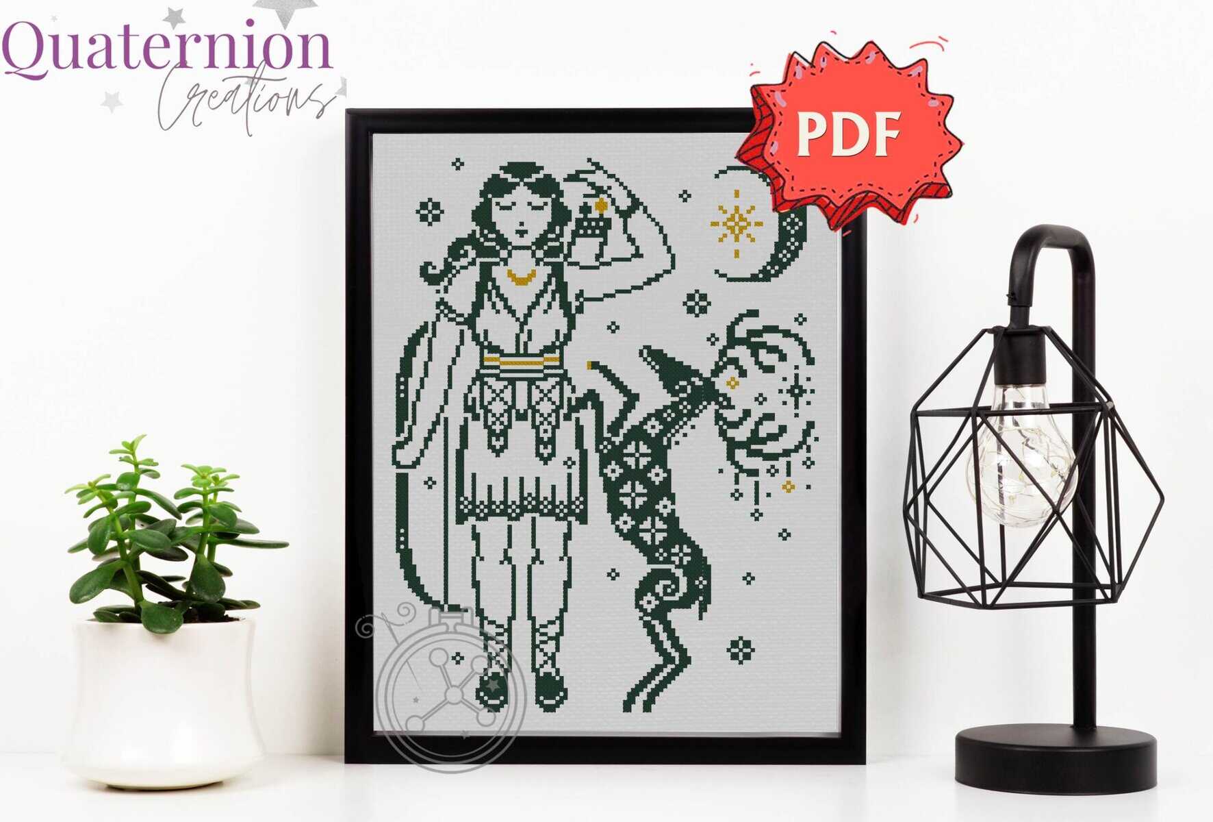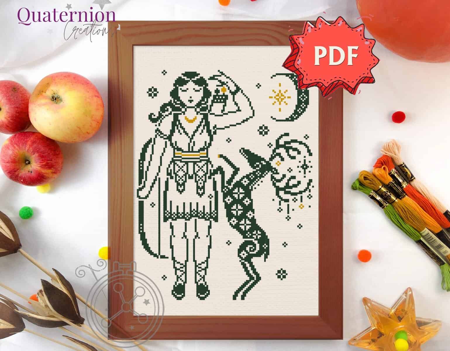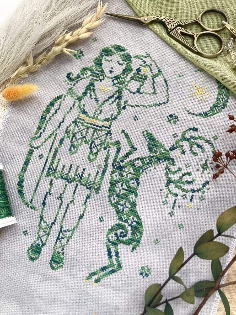 This cross stitch design of Artemis is inspired by Greek myths and vase images.