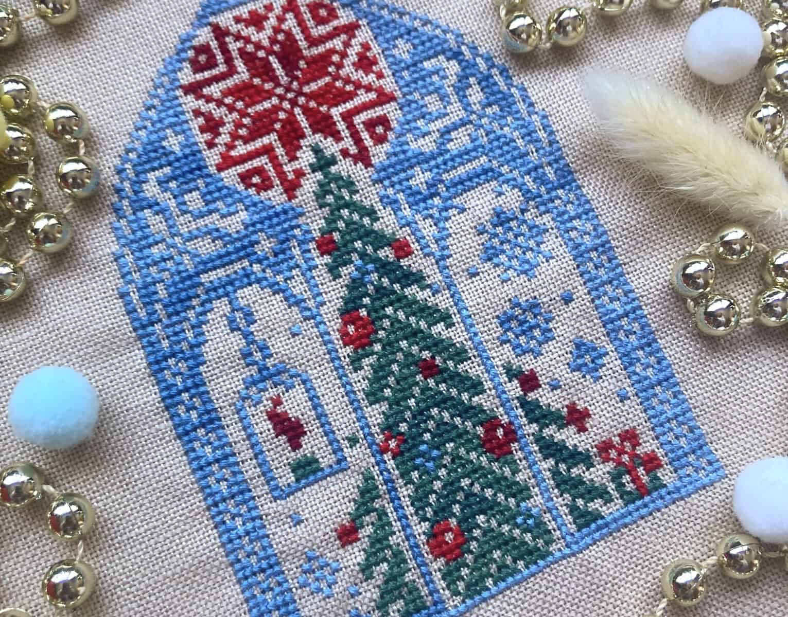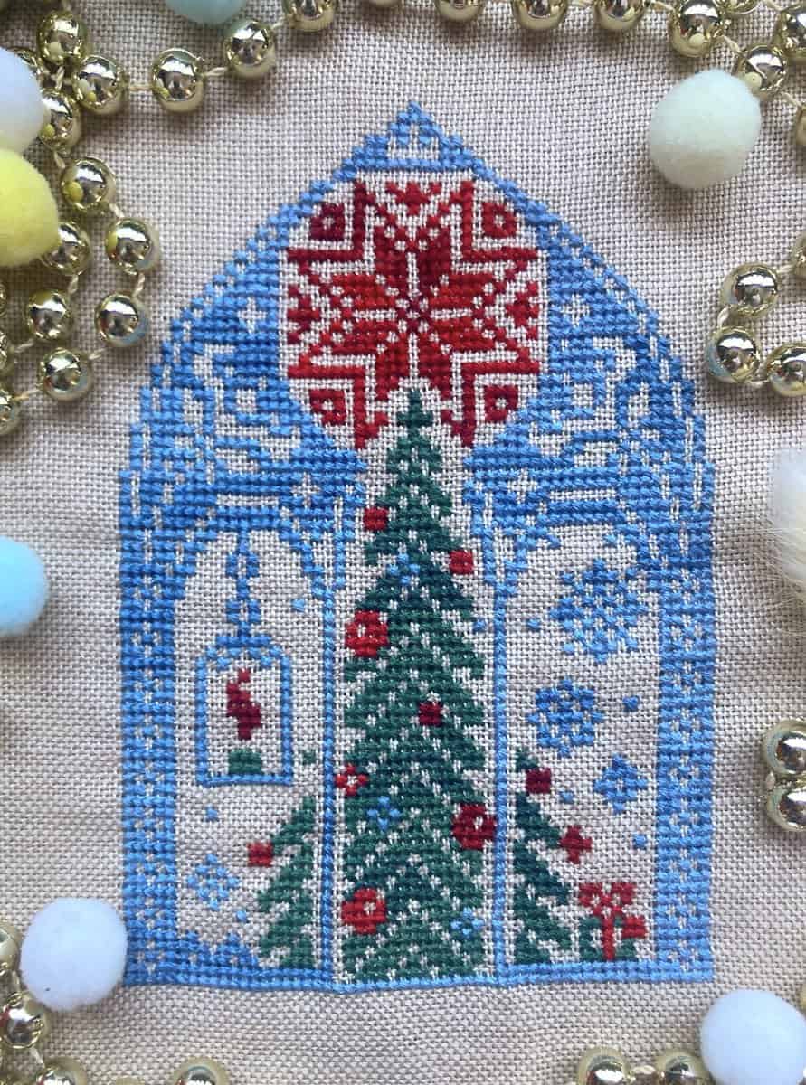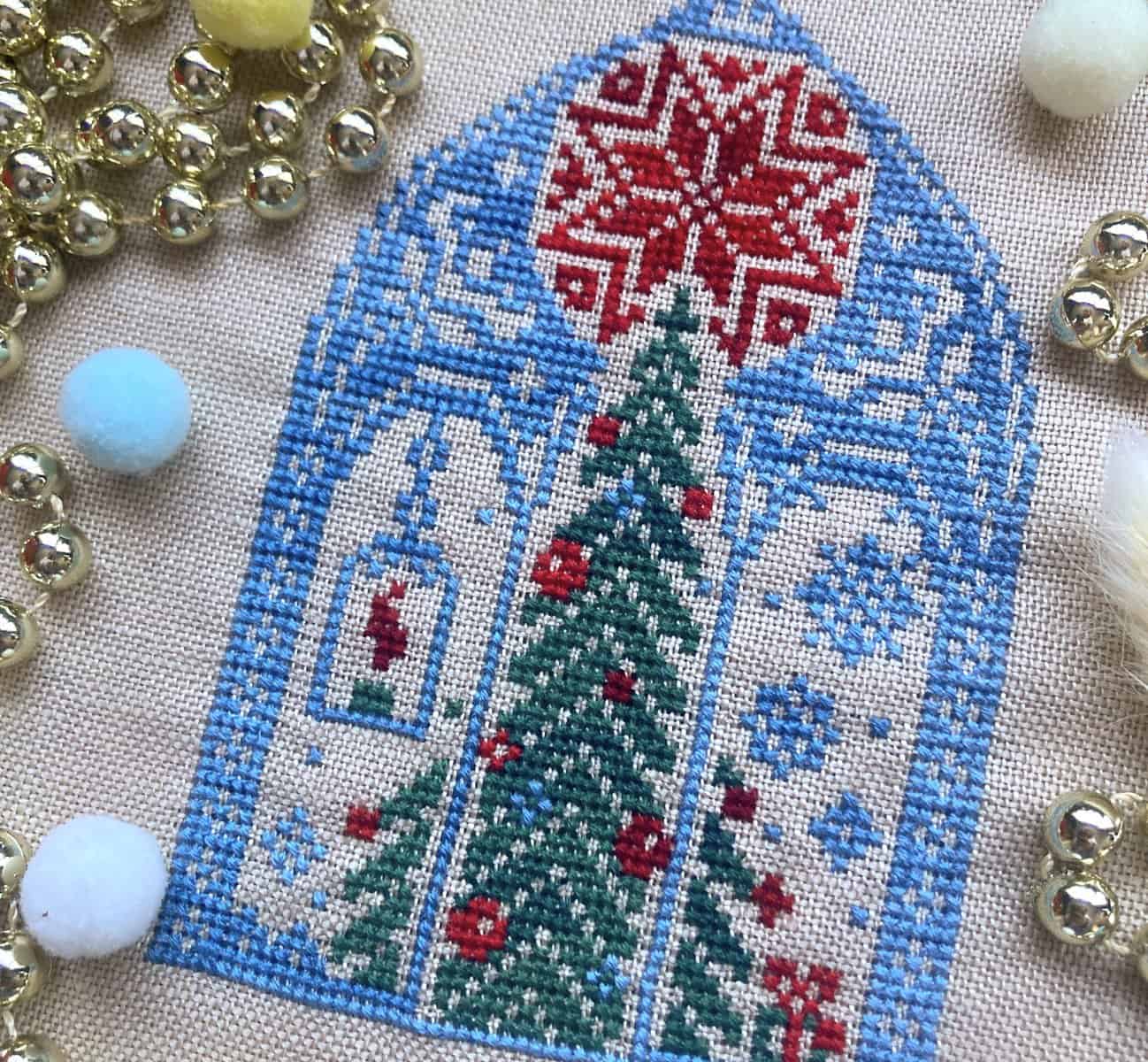 Pattern size: 55 x 77 stitches, three colors (model stitched in Gentle Art Sampler Threads, with DMC conversion)