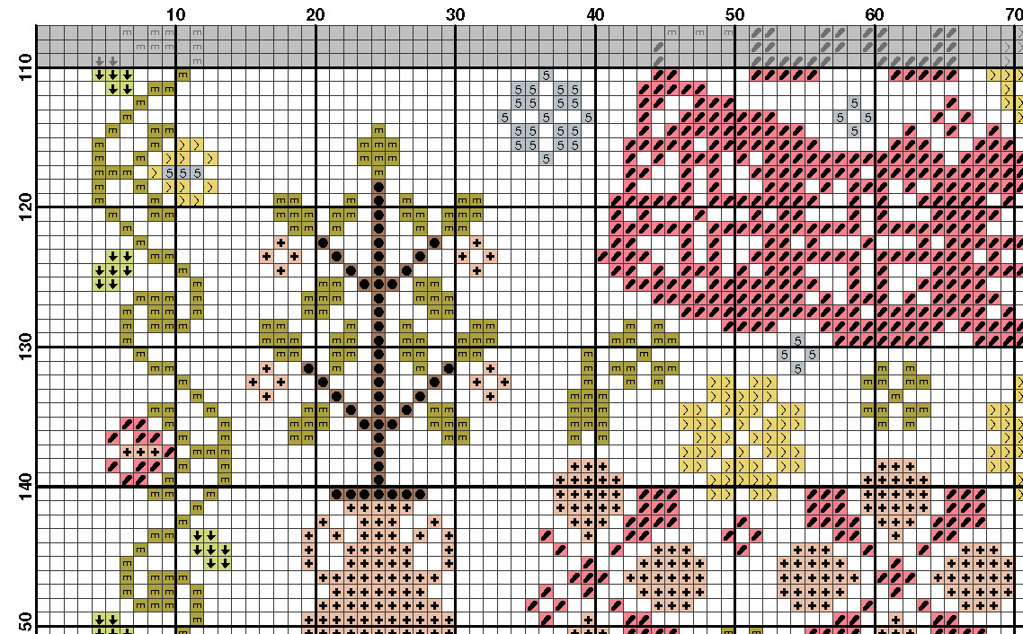 – A ready-to-print colored PDF pattern on 4 pages complete with symbol chart, and color floss legend for DMC thread
