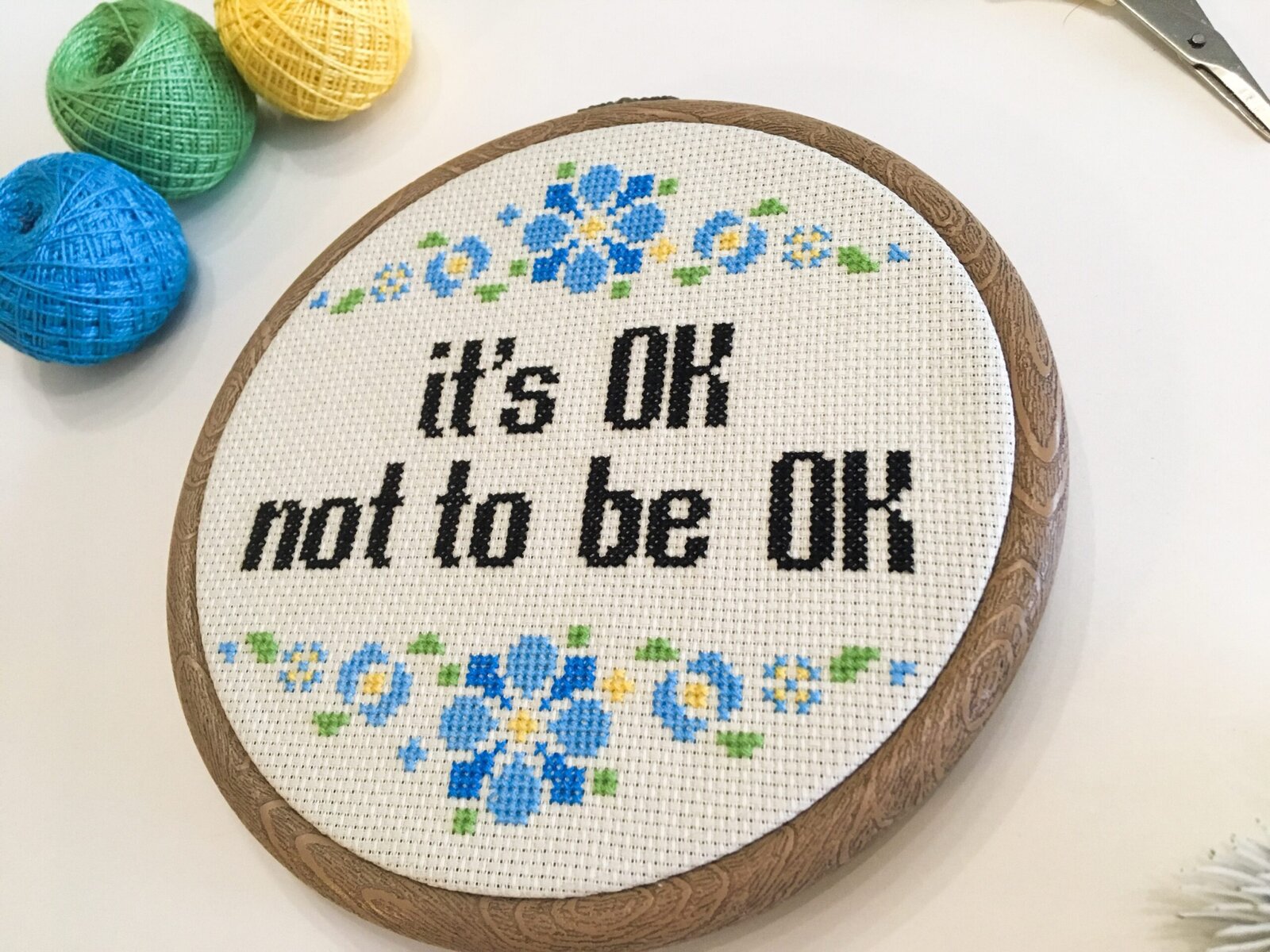 It’s OK not to be OK – a simple cross stitch project with a powerful message. Simple and crisp design, a pattern suitable for beginners.