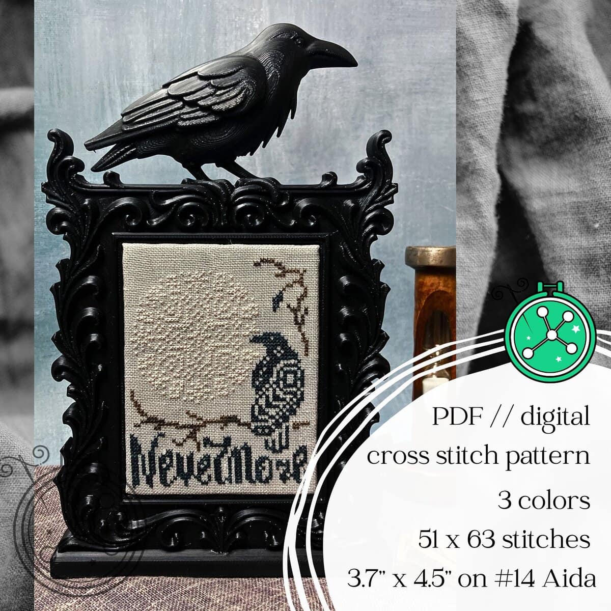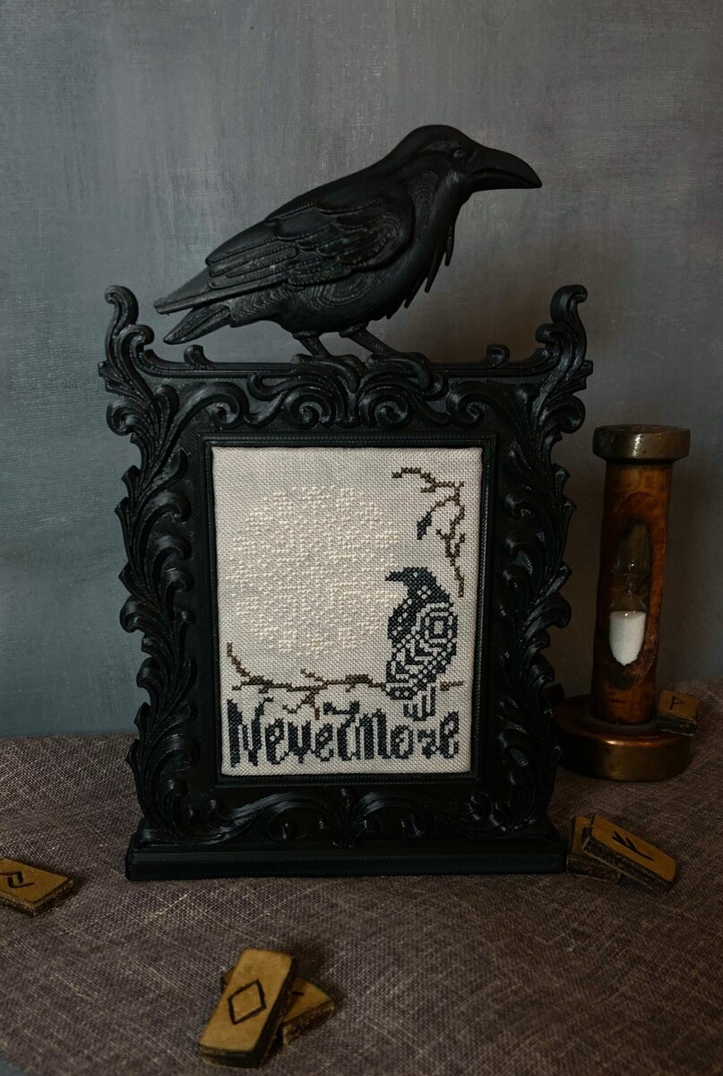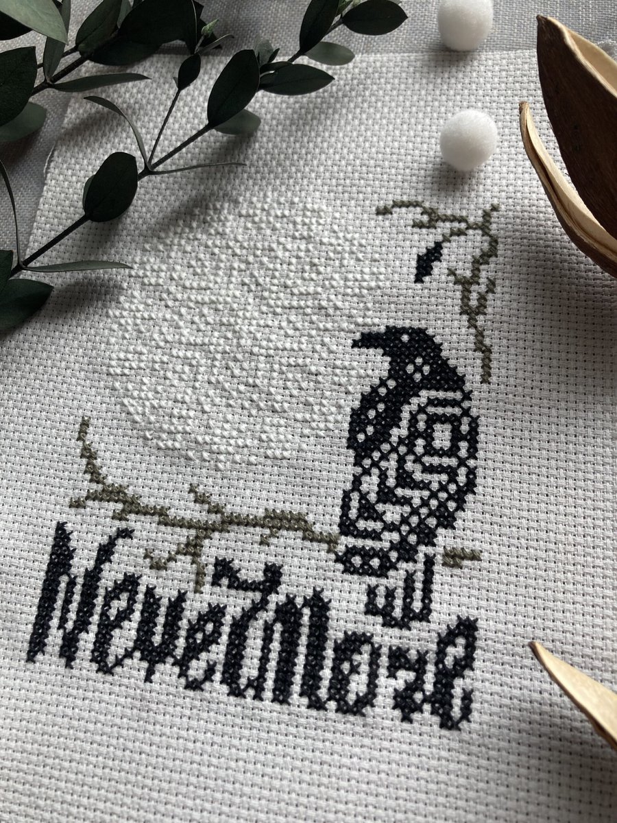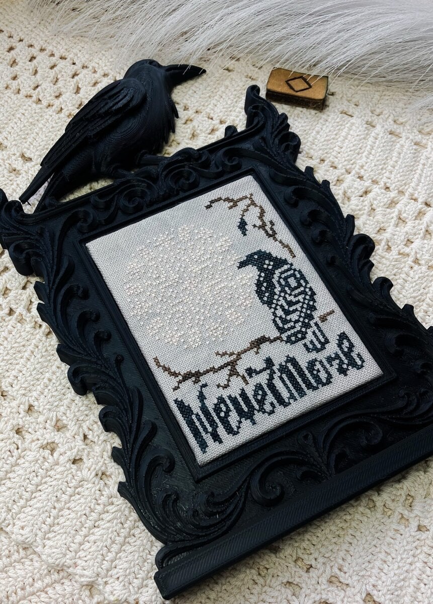 The Nevermore cross stitch pattern is inspired by E.A. Poe’s best known poem, The Raven: