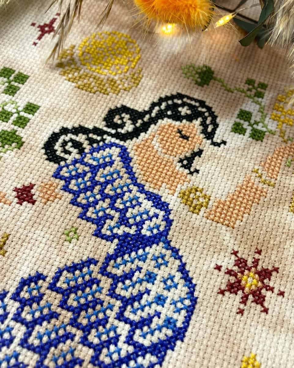 – A ready-to-print colored PDF pattern complete with symbol chart, and color floss legend for DMC thread