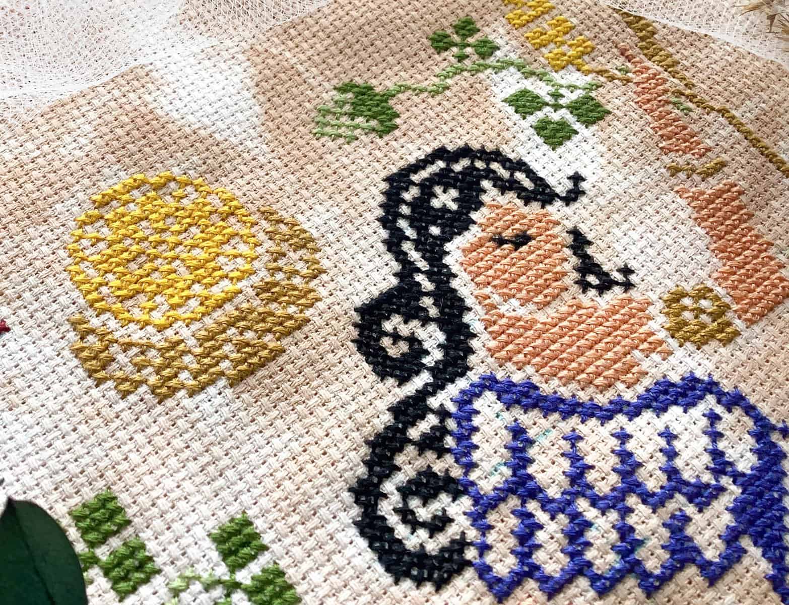 Pattern size: 79 x 115 stitches, 9 DMC colors.