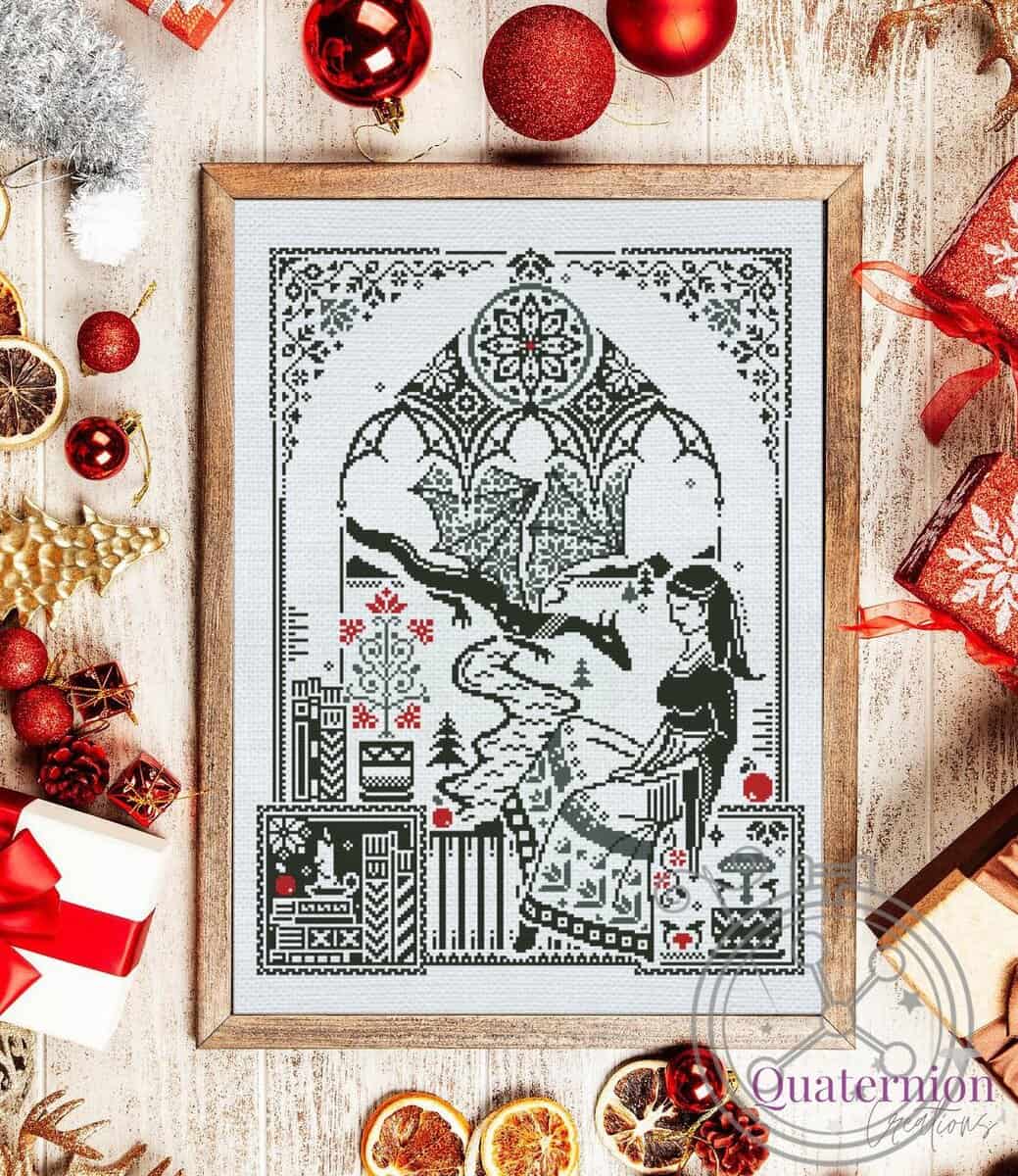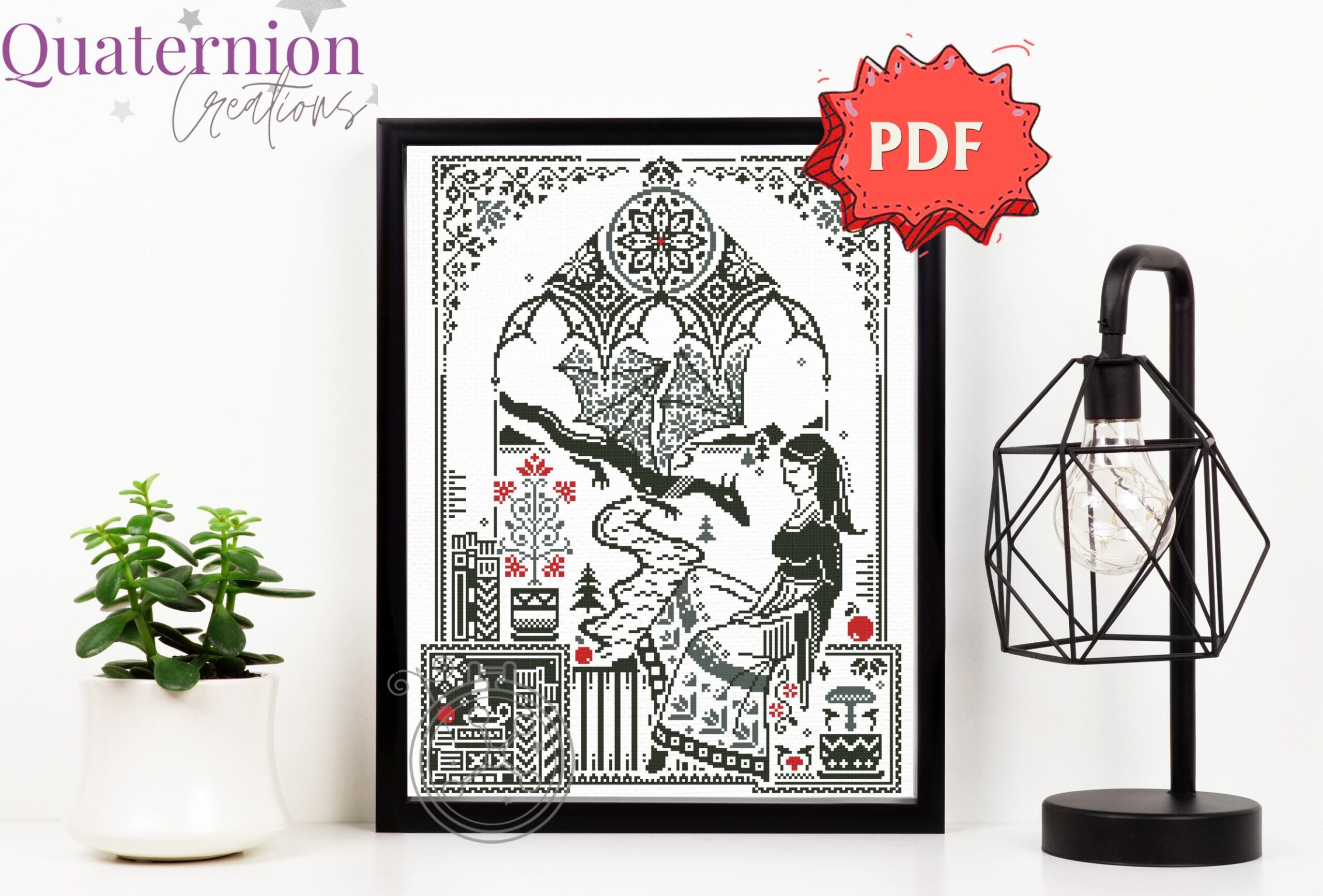 – A ready-to-print PDF pattern with colored symbol chart on nine pages and color floss legend for DMC thread