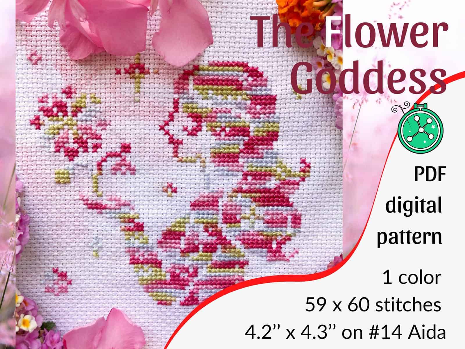 The Flower Goddess is a lovely small cross such motif that can be stitched in a variety of colors, and finished not only in a range, but as an ornament or a pin cushion.