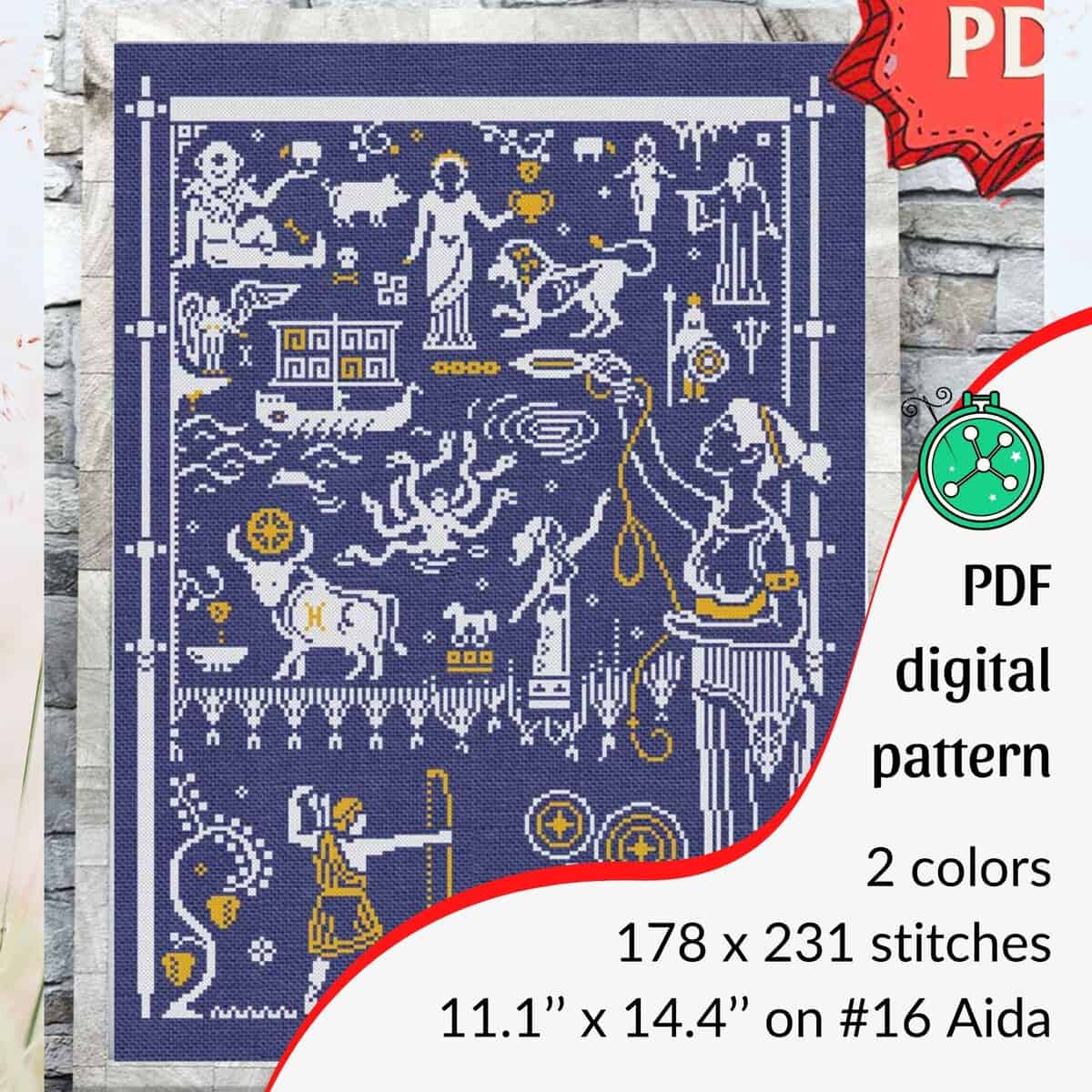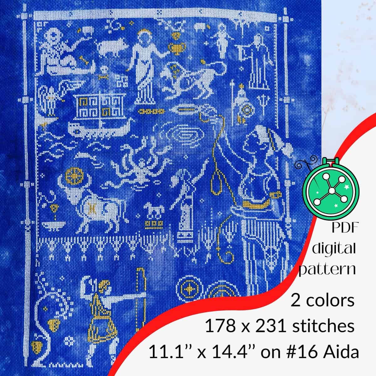 – A ready-to-print PDF pattern on several pages complete with symbol chart, and color floss legend for DMC thread